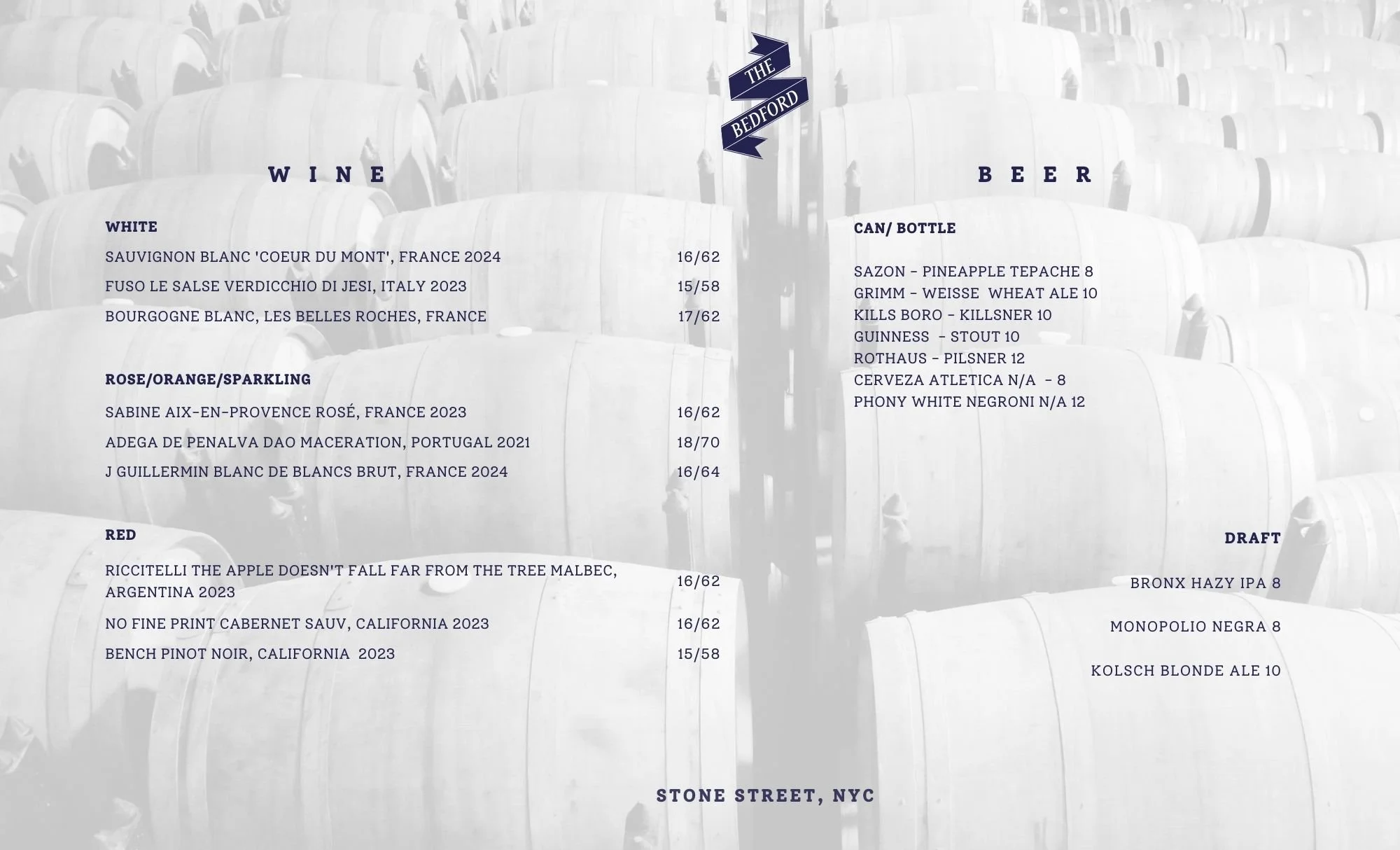 Stone Street Menu